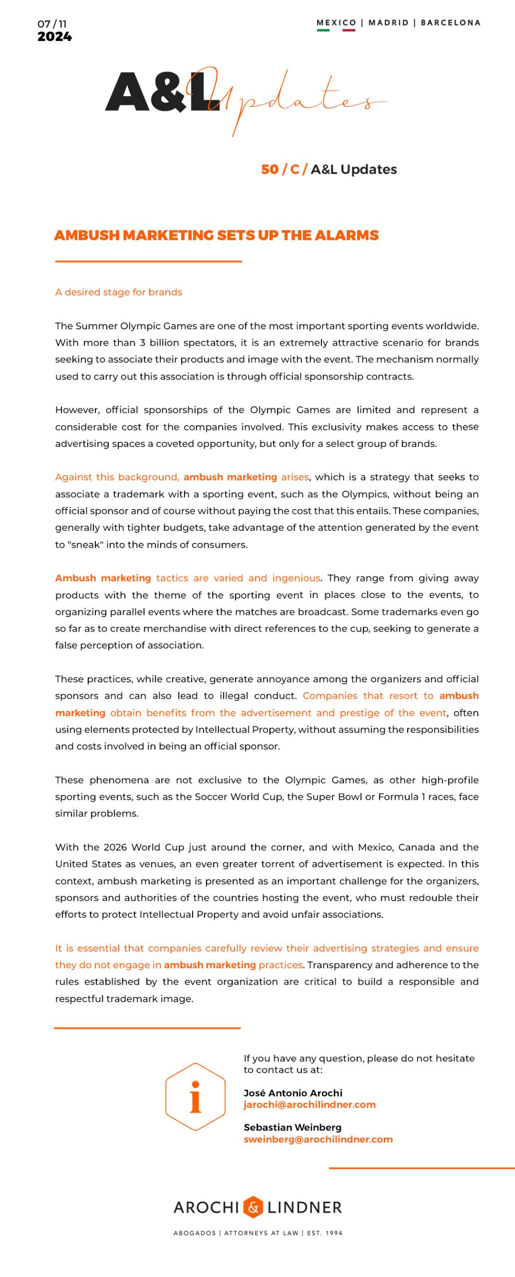 If the Owner wishes to know the details of the processing of personal data, as well as their corresponding rights, they may read the relevant Integral Privacy Notice at https://www.arochilindner.com/en/notice-of-privacy/ or may submit a request to A&L’s Personal Data Department via e-mail: [email protected].