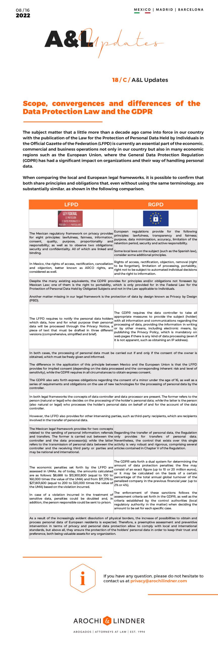 A&L Updates: Scope, convergences and differences of the Data Protection Law and the GDPR