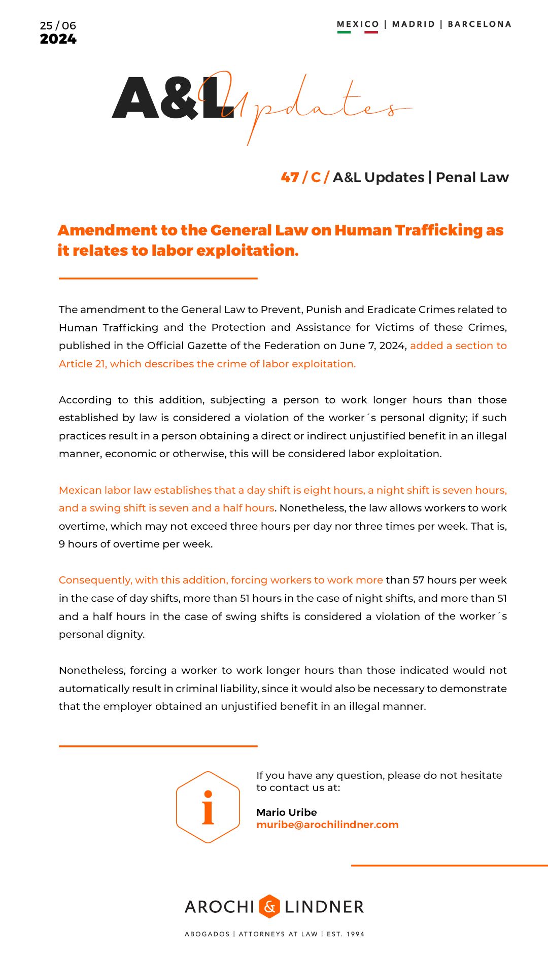 A&L Updates | Penal Law | Amendment to the General Law on Human Trafficking as it relates to labor exploitation.