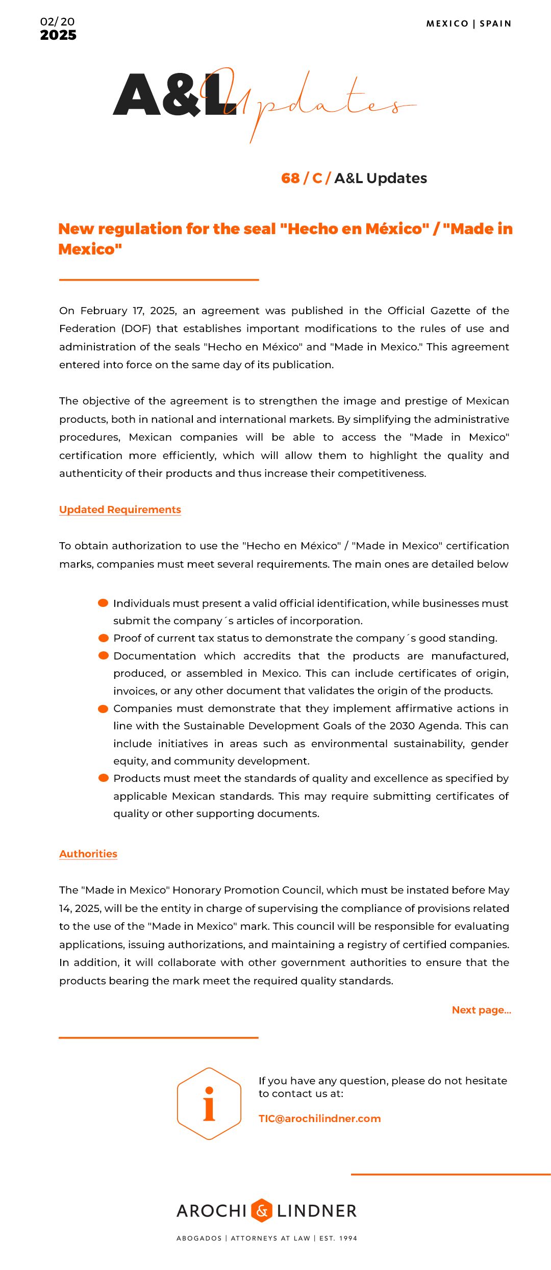 A&L Updates | New regulation for the seal “Hecho en México” / “Made in Mexico”
