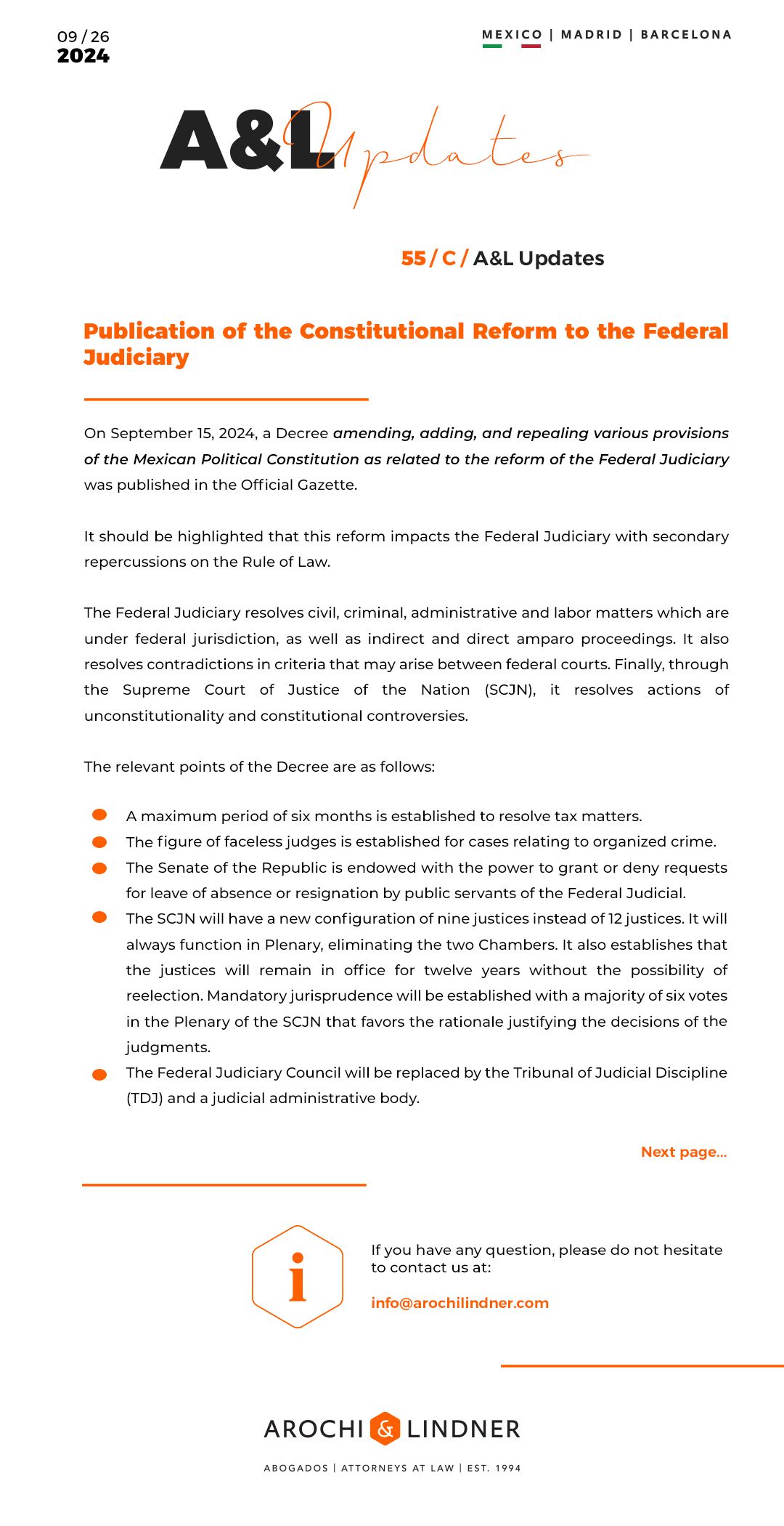 A&L Updates | Publication of the Constitutional Reform to the Judicial Branch of the Federation
