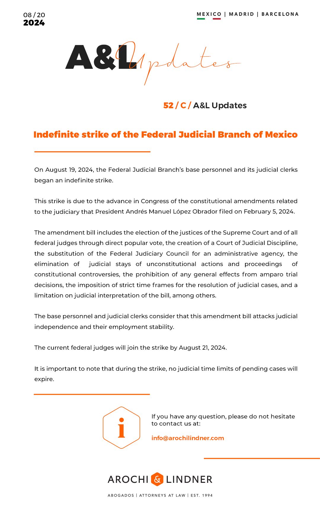 A&L Updates | Indefinite strike of the Federal Judicial Branch of Mexico