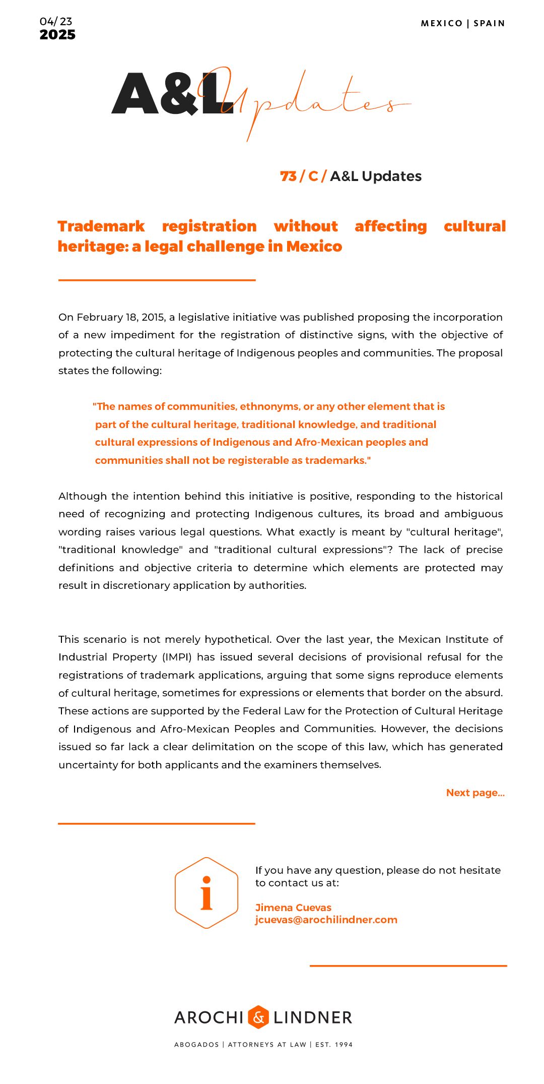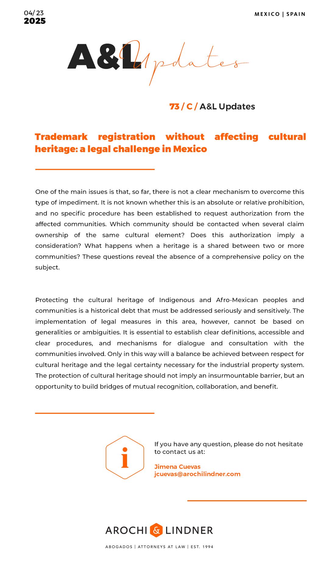 A&L Updates | Trademark registration without affecting cultural heritage: a legal challenge in Mexico